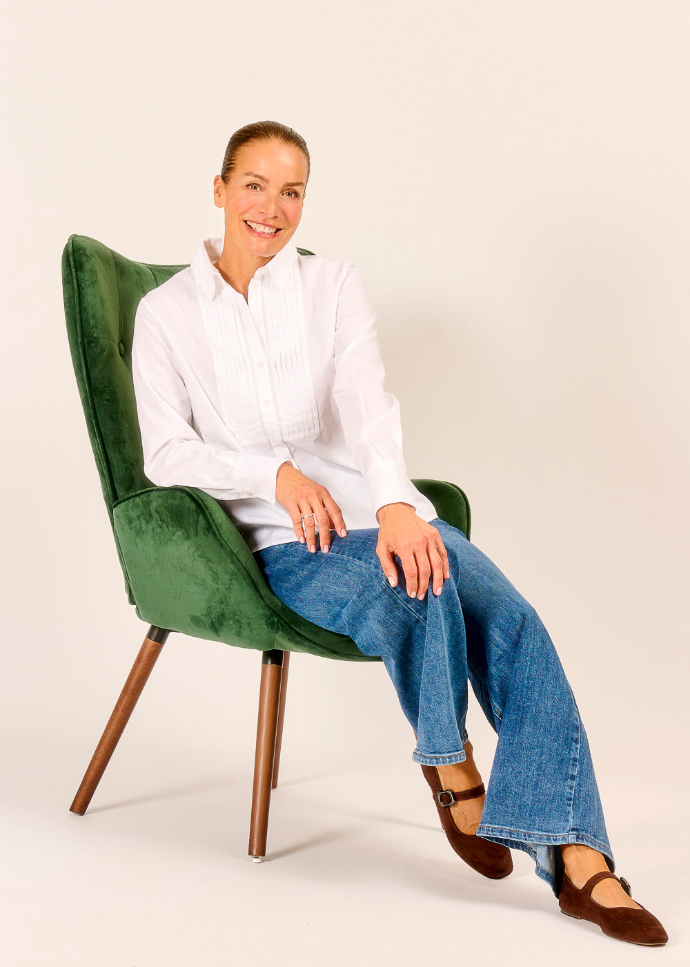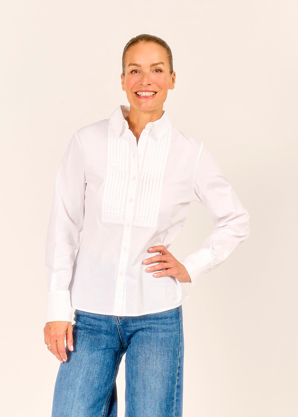 Ein zeitloser Klassiker, der Eleganz und Femininität verkörpert: Die exquisite Bluse mit feinen Biesen, die mit ihrer detailreichen Verarbeitung und dem hochwertigen Material überzeugt. Sie umspielt sanft die Figur und verleiht jedem Outfit eine schlichte, aber dennoch raffinierte Note. Ein vielseitiges Key-Piece, das Ihrem Look eine Aura von Stil und Anmut verleiht.