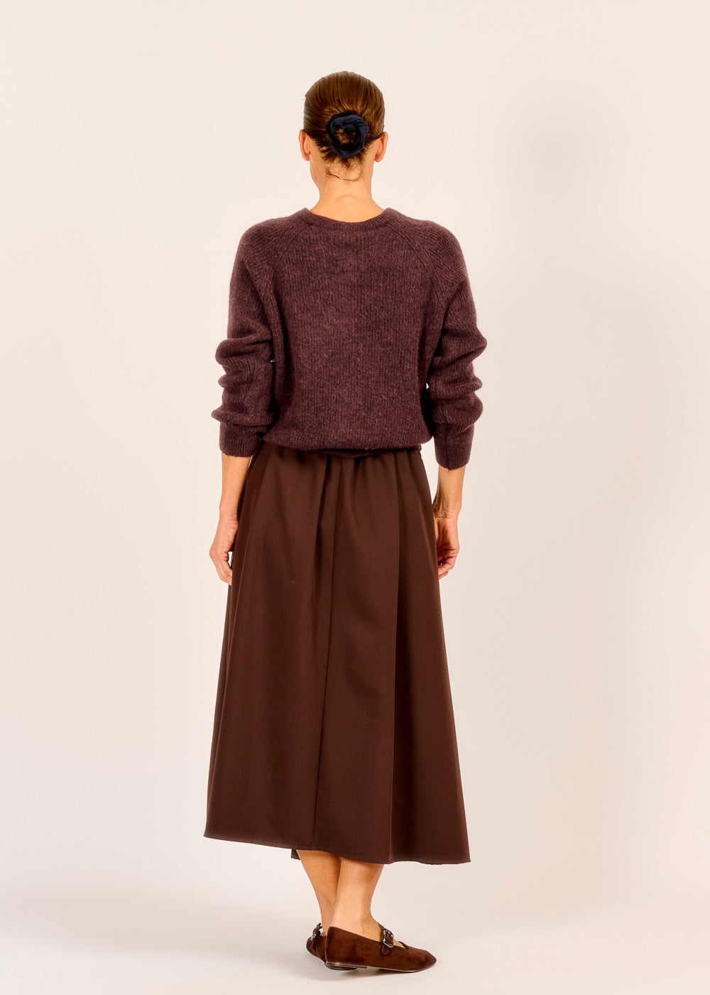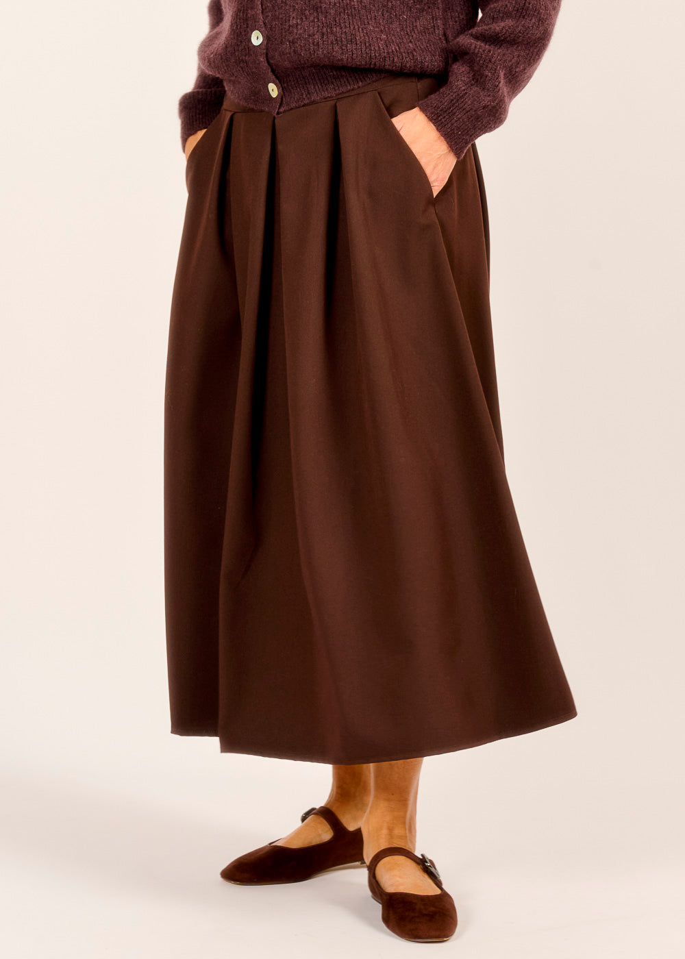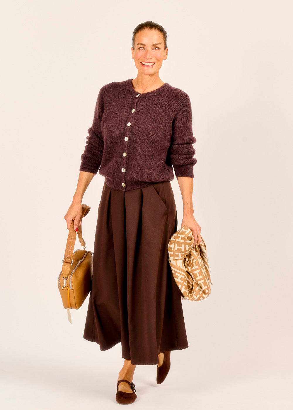 Setze auf zeitlose Eleganz mit unserem fließenden Rock in sattem Moka. Der weich fallende Stoff und die dezenten Bundfalten kreieren eine wunderschöne Silhouette. Mit seiner schmeichelhaften Midilänge und den praktischen Eingriffstaschen verbindet er mühelos Stil und Komfort. Kombiniere ihn mit Stiefeln und einem kuscheligen Strickteil für einen edlen Look, der dich durch die ganze Saison begleitet.