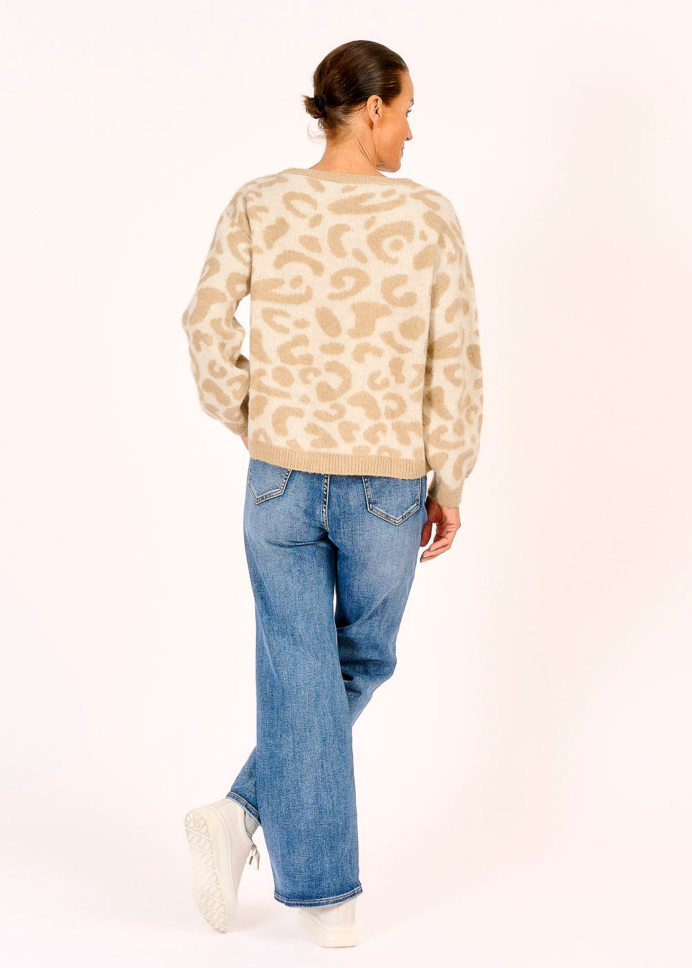 Dieser Pullover mit modischem Animalmuster in Beige setzt einen trendigen Akzent in deiner Garderobe. Der weiche Stoff sorgt für ein angenehmes Tragegefühl, während das auffällige Muster einen modernen, stylishen Look kreiert. Perfekt für einen urbanen, lässigen Stil lässt sich der Pullover vielseitig kombinieren und ist ein echter Hingucker.