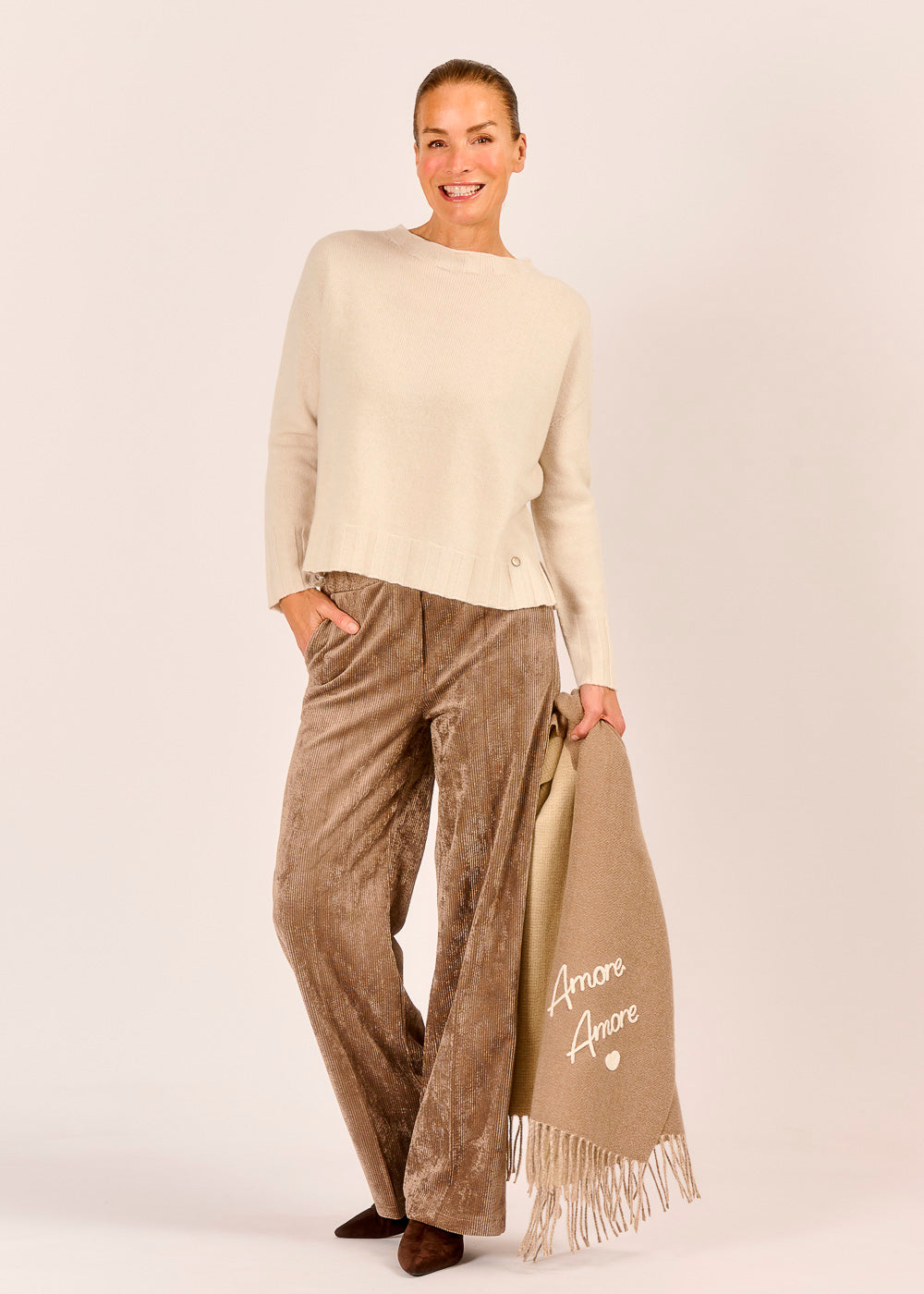 Der hochwertige Merino-Pullover überzeugt mit viel Liebe zum Detail und außergewöhnlicher Weichheit. Sein heller Farbton verleiht jedem Outfit eine elegante Note und schafft einen Look, der zeitlos und zugleich modern wirkt.