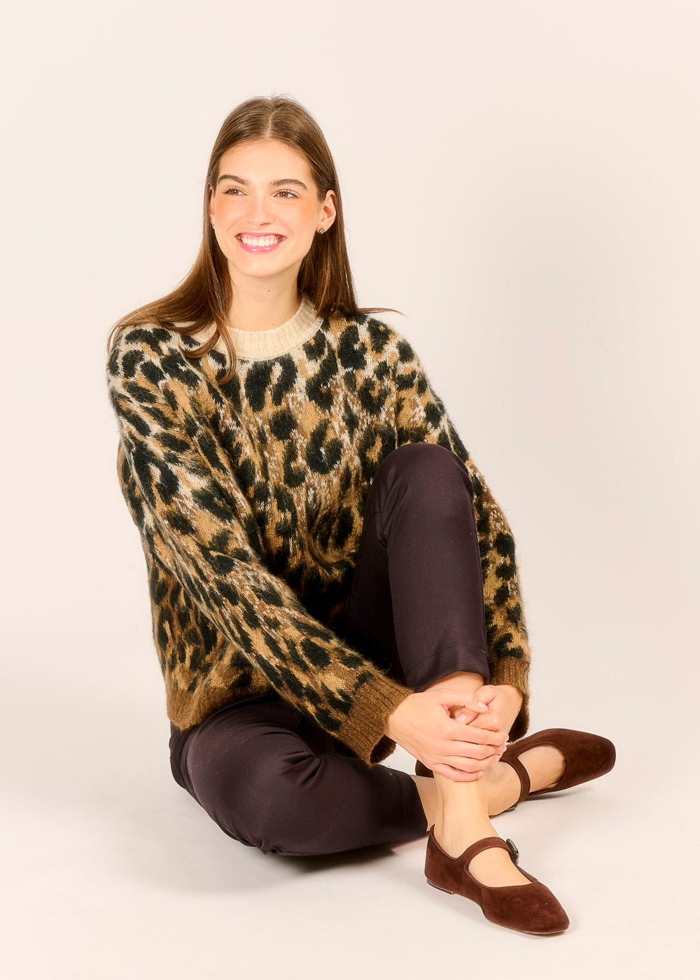 Tauchen Sie ein in den urbanen Dschungel mit diesem unwiderstehlichen Animal-Print-Pullover, der sofort alle Blicke auf sich zieht. Das flauschige, luxuriöse Material und der trendige Leoparden-Look in warmen Braun- und Schwarztönen garantieren einen stilvollen und zugleich gemütlichen Auftritt. Kombinieren Sie ihn mit einer schlichten Hose oder Jeans, um den mutigen Print in den Mittelpunkt zu stellen und Ihr Outfit zu einem echten Statement zu machen.