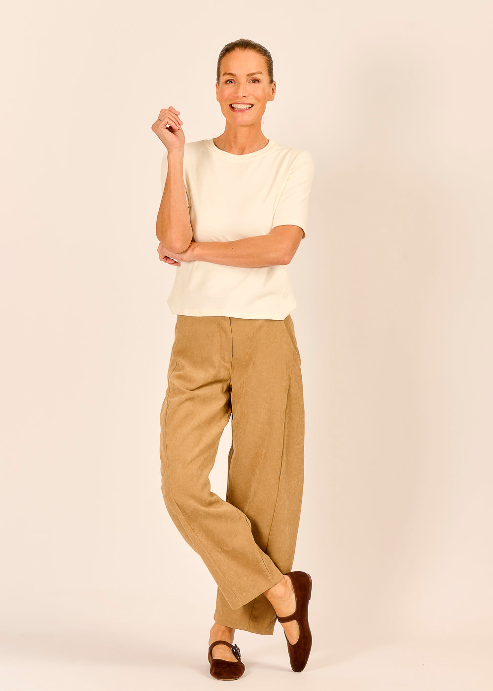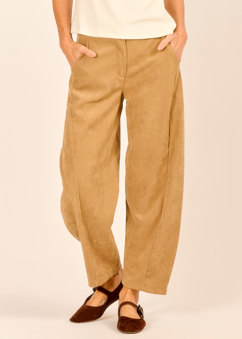 Die modische Ballon-Silhouette setzt ein stilvolles Statement und wirkt zugleich lässig. Der Caramello-Ton verleiht jedem Look eine warme Note und erinnert an Cappuccino in einem kleinen Café in Florenz. Kombiniert mit hellem Feinstrick entsteht ein eleganter Look.